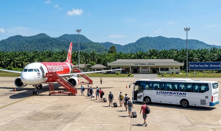 If you are already in Thailand and looking for a quick, budget-friendly domestic route, flying into Chumphon Airport (CJM) is an excellent choice. Airlines like Thai AirAsia and Nok Air operate daily, inexpensive flights from Bangkok's Don Mueang Airport (DMK) directly to Chumphon. Because Chumphon is the closest mainland point to Koh Tao, the connecting ferry ride is the shortest available, typically taking just 1.5 hours to reach the Mae Haad pier.